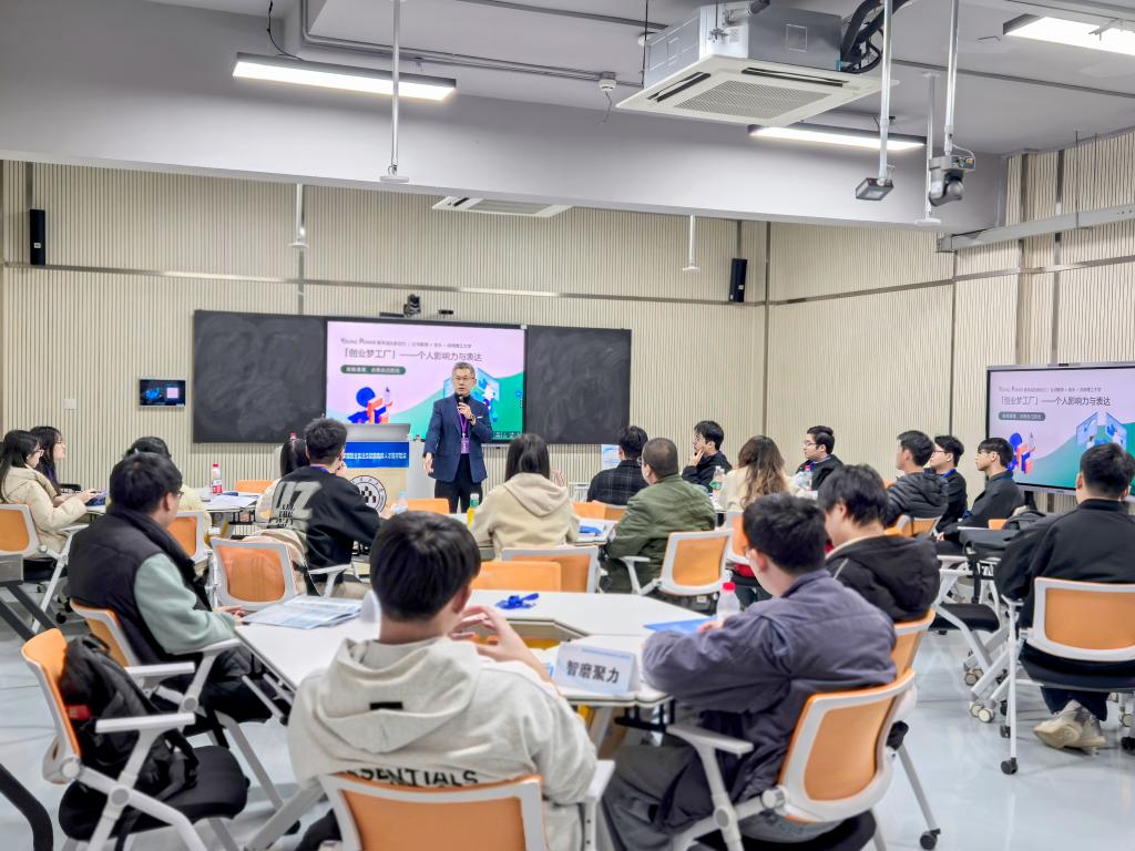 本次培训紧扣创新驱动发展战略与高校双创教育要求,采用“四维赋能”模块化教学模式,设置 “创业赋能特训”“个人影响力锻造”“就业技能提升”“海外升学指导”四大模块。创业赋能特训模块从创业认知到商业思维的闭环训练,完成从创意发掘、市场调研到创业方案计划落地的全流程实操。个人影响力锻造模块以 “表达+实战”为核心,通过演讲技巧打磨、即兴表达训练、商务沟通模拟等沉浸式课程,提升学员职业素养能力。就业技能提升模块紧扣求职全链条需求,引入企业真实招聘案例与高频面试场景,帮助学员精准掌握求职关键技巧,增强职场适应力与竞争力。海外升学指导模块为计划深造的学子提供留学规划等一站式解决方案,进一步明确了留学路径与准备方向。