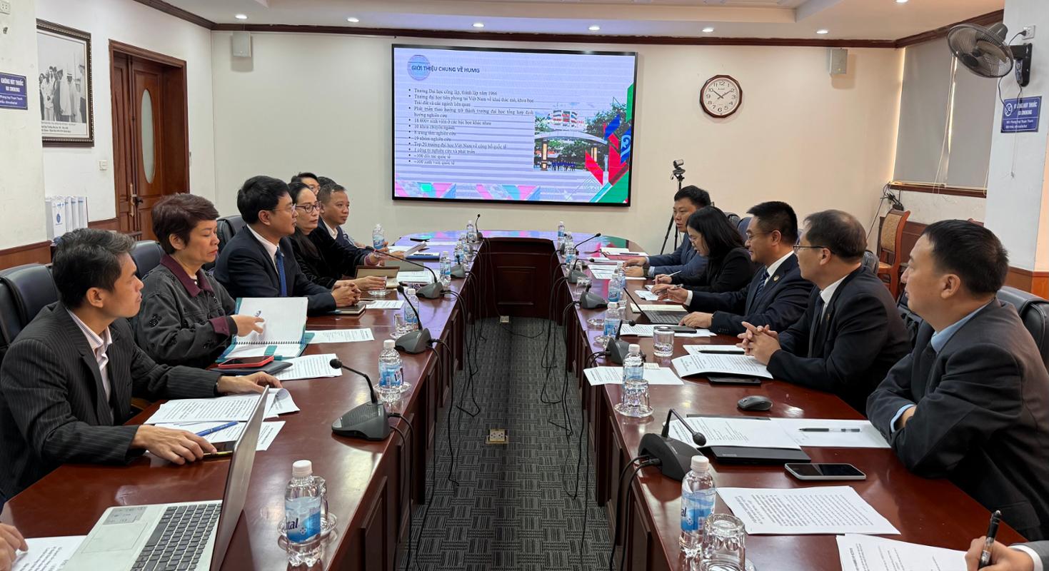 会谈中,双方围绕矿产资源绿色开发、材料科学与工程等方向探讨合作路径,提出依托双方优势学科联合申报国际科研项目,进一步推动共建中越卓越工程师学院,并在此基础上设立青年科学家交流计划,支持双方青年教师与研究生开展常态化科研协作与学术互访,构建长效合作机制。代表团参观了该校材料学院实验室,详细调研办学条件,双方就工程硕博士联合培养达成初步合作意向,该校计划近期组团回访,加速推进各项合作落地见效。