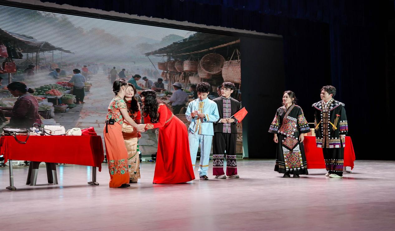 晚会还创新融合现代表演形式,街舞《that that》、话剧《边民互市》、朗诵与合唱《夜空中最亮的星》等节目,体现了中外青年在艺术创造中的深度融合。最后,晚会在中外学子在激昂欢快的串烧歌曲《炫动中华》中圆满落幕,整场演出不仅是一场视听盛宴,更是一次深刻的文化对话与情感共鸣。