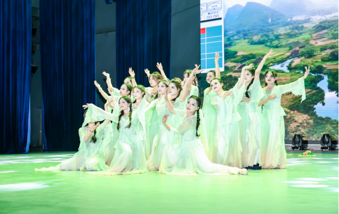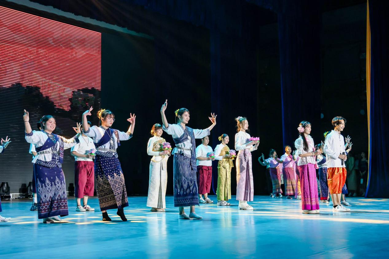 整场晚会洋溢着青春活力与跨文化共鸣。开场服装秀《青春逐梦,世界同辉》融汇多国服饰元素,以绚烂多彩的视觉语言,传递出携手前行、共赴未来的美好期许。随后,老挝舞蹈《欢舞少年郎》、孟加拉歌伴舞《孟加拉欢歌》、尼泊尔民族舞《热情尼泊尔》、巴基斯坦舞台表演《丝路新跃》、蒙古舞蹈《托林胡尔》、越南歌伴舞《我的越南》、泰国舞蹈《烛光守夏》等节目轮番上演,生动呈现了各国独特的艺术风情与文化底蕴。中国学生演绎的舞蹈《稻浪间的振兴欢歌》则以其富有感染力的肢体语言,展现了当代中国乡村振兴的生动图景。中外师生共同唱响《花开中国》以悠扬而温暖的旋律,将全场情感紧密凝聚。
