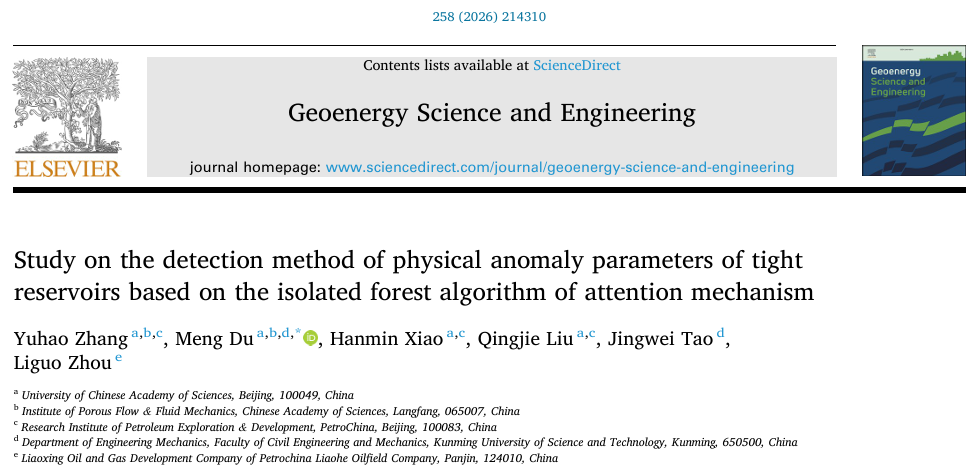 近日,昆明理工大学建筑工程学院李泽/杜猛课题组在人工智能驱动数字岩心表征领域取得重要研究进展,相关成果以“Study on the detection method of physical anomaly parameters of tight reservoirs based on the isolated forest algorithm of attention mechanism” 为题,发表于地质能源科学工程领域国际顶级期刊《Geoenergy Science and Engineering》。