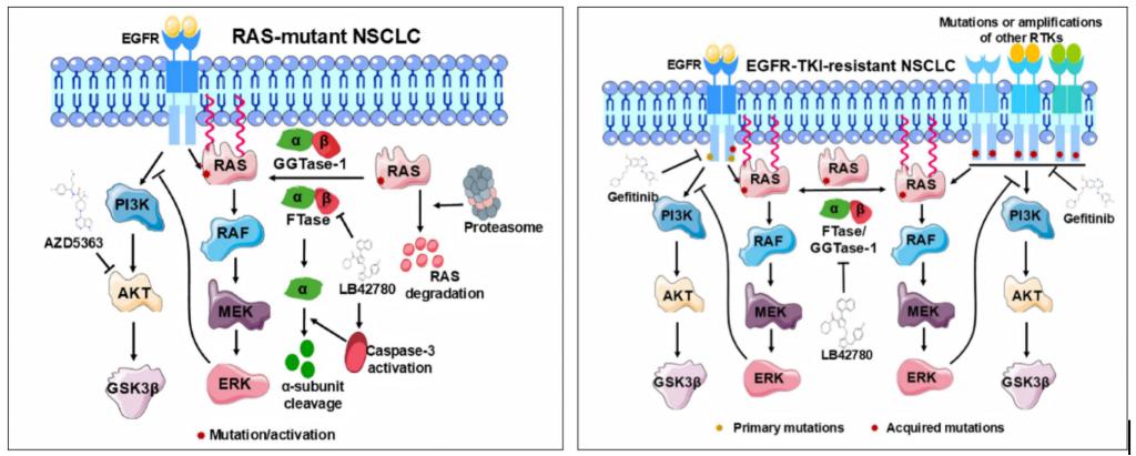 近日,昆明理工大学生命科学与技术学院徐天瑞教授团队在非小细胞肺癌(NSCLC)靶向治疗领域围绕RAS突变型肺癌及EGFR酪氨酸激酶抑制剂(EGFR-TKIs)耐药这一临床难题,系统揭示了法尼基转移酶(FTase)抑制剂LB42708的抗肿瘤作用及分子机制,并提出了基于联合用药的潜在治疗策略。相关研究成果以“FarnesyltransferaseinhibitorLB42708disablesoncogenicRASsignalingandovercomesgefitinibre...