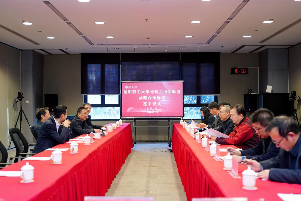 1月21日,昆明理工大学与贺兰山实验室合作协议签约仪式暨座谈交流活动在学校莲华校区伍集成会堂举行。校党委副书记、校长杨斌,校党委常委、副校长李祖来,校长助理曹峥,贺兰山实验室主任易健宏、党支部书记赵功强、副主任王东新出席活动。