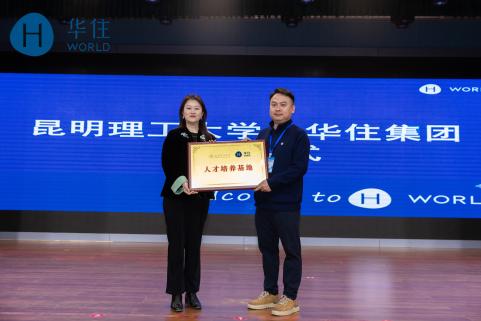 活动现场举行了校企合作授牌仪式,学校就业指导中心相关负责人为华住集团授予“实习就业基地”牌匾;华住集团总部招聘总监为昆明理工大学授予“人才培养基地”牌匾。标志着此次校企合作迈入规范化、深层次发展新阶段,为管培生输送、实习就业保障、人才联合培养奠定坚实基础。