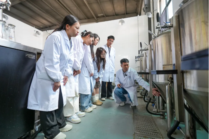 学校老师在开展啤酒酿造工艺教学。郝亚鑫 摄