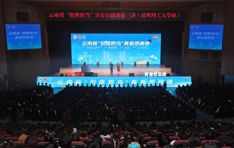 12月19日,我省“挺膺担当”青春思政课第三讲在昆明理工大学呈贡校区红土会堂开讲。本次活动由共青团云南省委、中共云南省委教育工委、云南省学生联合会与昆明理工大学联合主办,以“让青春在强国强军事业中焕发光彩”为核心主题,1400余名青年学子聆听讲座。