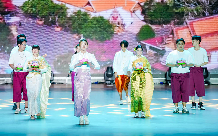 人民网昆明12月27日电 (记者李发兴)12月26日,“青春逐梦,世界同辉”——昆明理工大学第十三届“红土情·世界风”中外师生文艺晚会举行。来自巴基斯坦、老挝、泰国、越南、孟加拉国、缅甸、柬埔寨等43个国家的来华留学生与昆明理工大学师生们欢聚一堂,共同见证了多元文化在昆明理工大学的融合与绽放。
