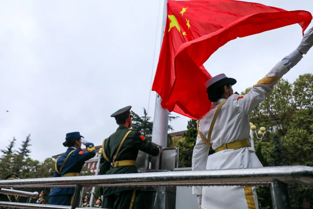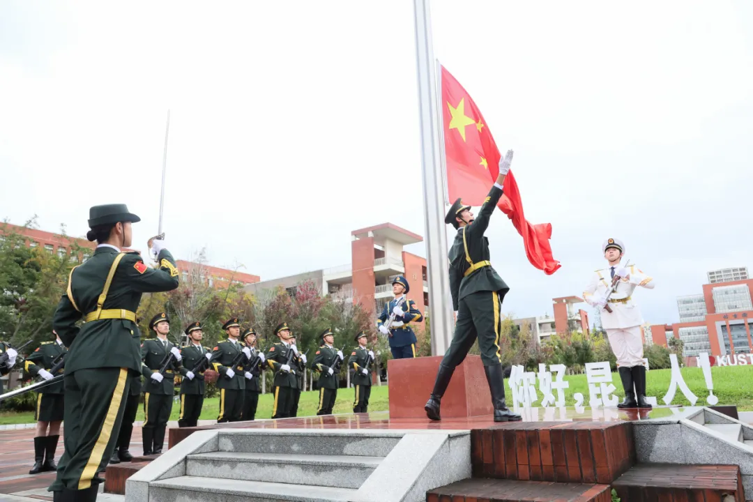 为庆祝中华人民共和国76周年华诞,弘扬爱国主义精神,10月1日清晨,昆明理工大学在莲华校区与呈贡校区同步举行庄严的升国旗仪式。