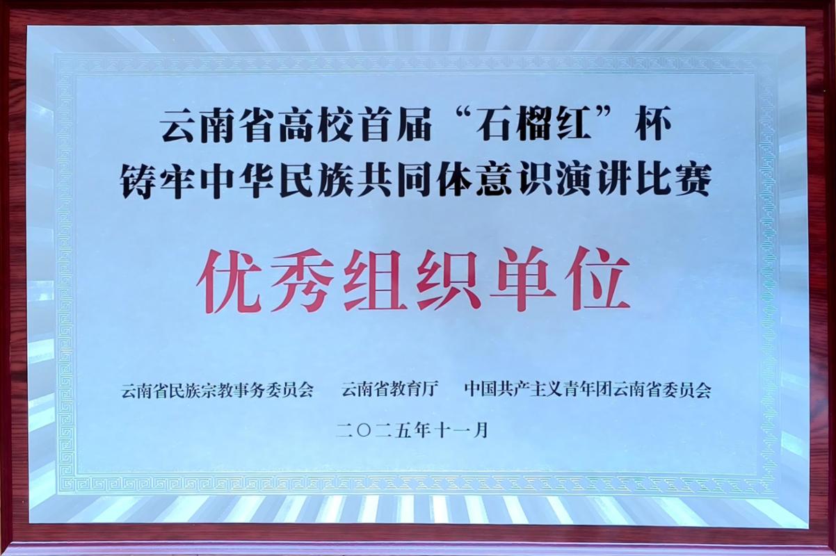 11月15日,由云南省民族宗教事务委员会、云南省教育厅、共青团云南省委主办,云南艺术学院承办,云南广播电视台、云南省演讲学会协办的云南省高校首届“石榴红”杯铸牢中华民族共同体意识演讲比赛决赛在昆明举办。经过激烈角逐,昆明理工大学共荣获一等奖1项(梁劲芸)、二等奖1项(于海利)、三等奖2项(马青云、杨浩),昆明理工大学获评“优秀组织单位”。