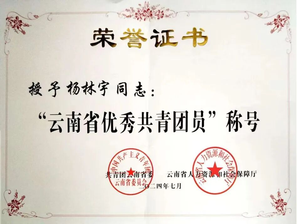 近日,共青团中央印发《关于表彰全国五四红旗团委(团支部)、全国优秀共青团员、全国优秀共青团干部的决定》,昆明理工大学生命科学与技术学院2023级硕士研究生杨林宇获评2025年“全国优秀共青团员”,云南省仅16人获此殊荣。