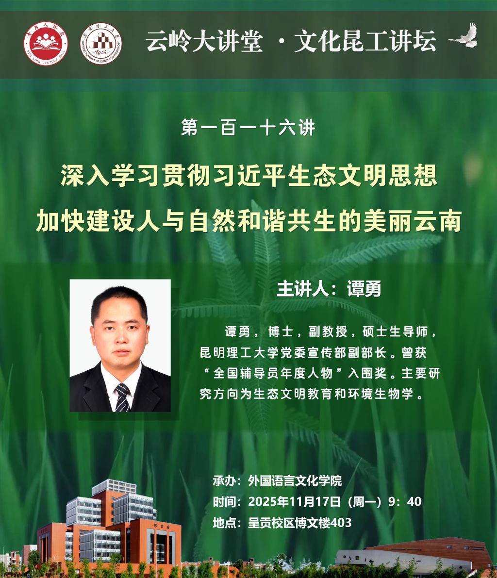 云岭大讲堂·文化昆工讲坛 | 深入学习贯彻习近平生态文明思想加快建设人与自然和谐...