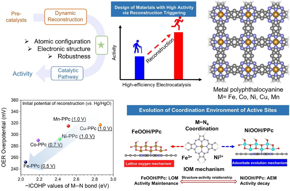 近日,昆明理工大学非常规冶金团队在金属有机框架动态重构研究上取得重要突破,揭示了金属酞菁催化剂中活性位点动态重构驱动反应机理转变并调控催化稳定性的重要规律。相关成果以“How Reconstruction-Driven Mec...