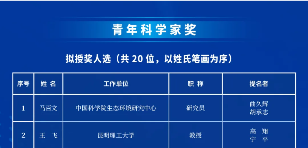 昆明理工大学环境科学与工程学院王飞教授荣获青年科学家奖